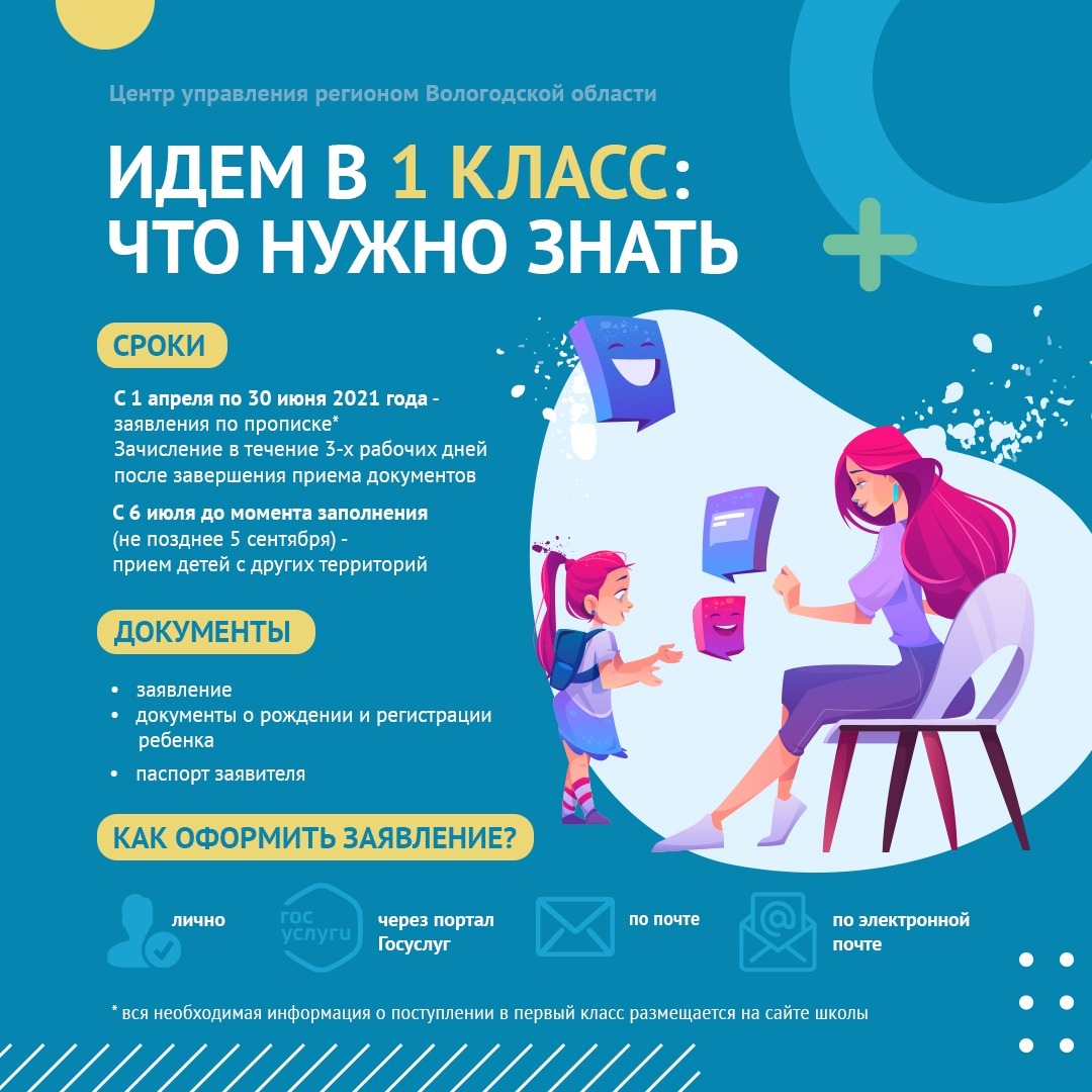 Зачисление в первый класс начинается с 1 апреля 2021 года.