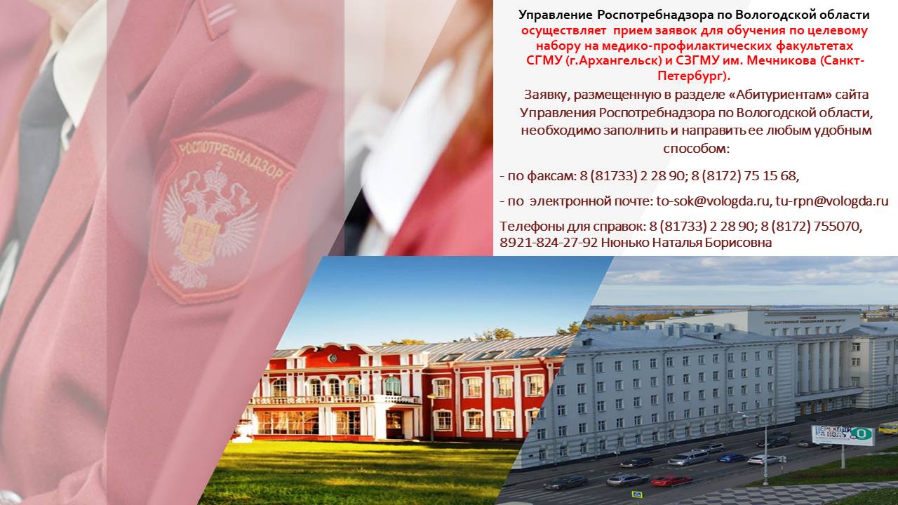 Управление Роспотребнадзора по Вологодской области осуществляет прием заявок для обучения по целевому набору